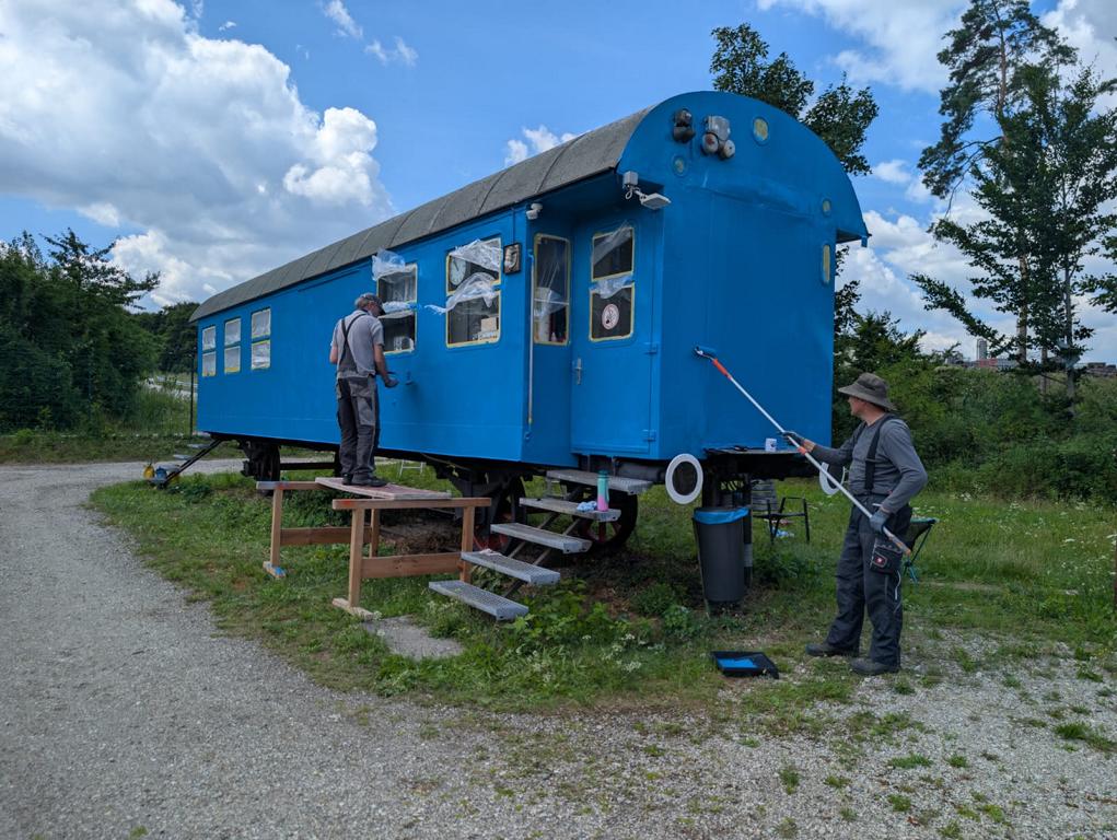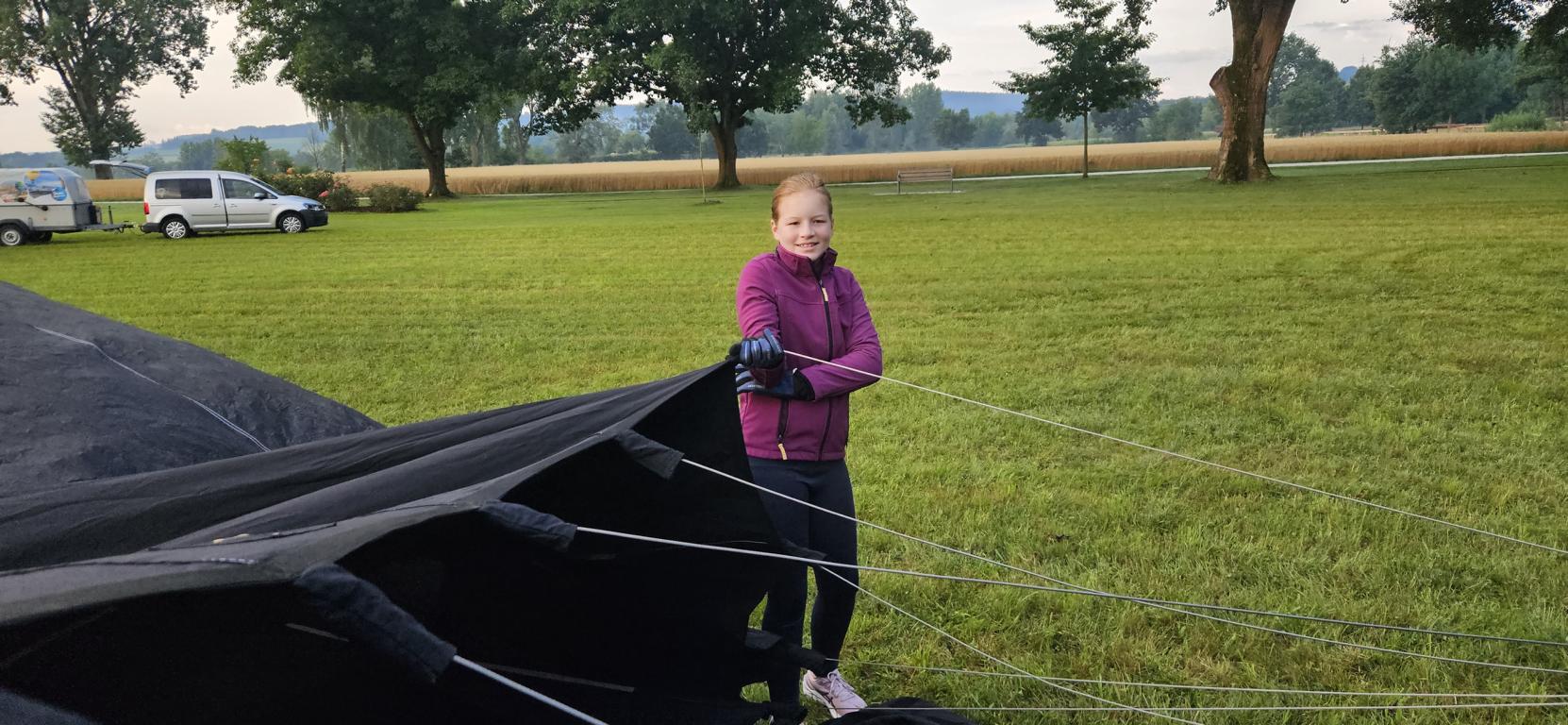 Bahnhof Kastl- Inn Staustufe Jettenbach - Gasballon fast gefüllt
