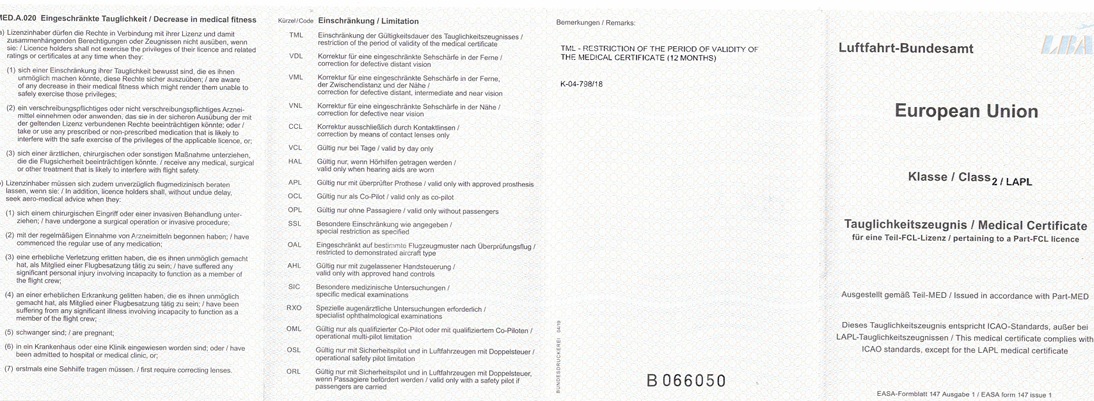 Das Medical muss regelmäßig erneuert werden, wie oft, entscheidet der Fliegerarzt nach den gesetzlichen Vorgaben.
