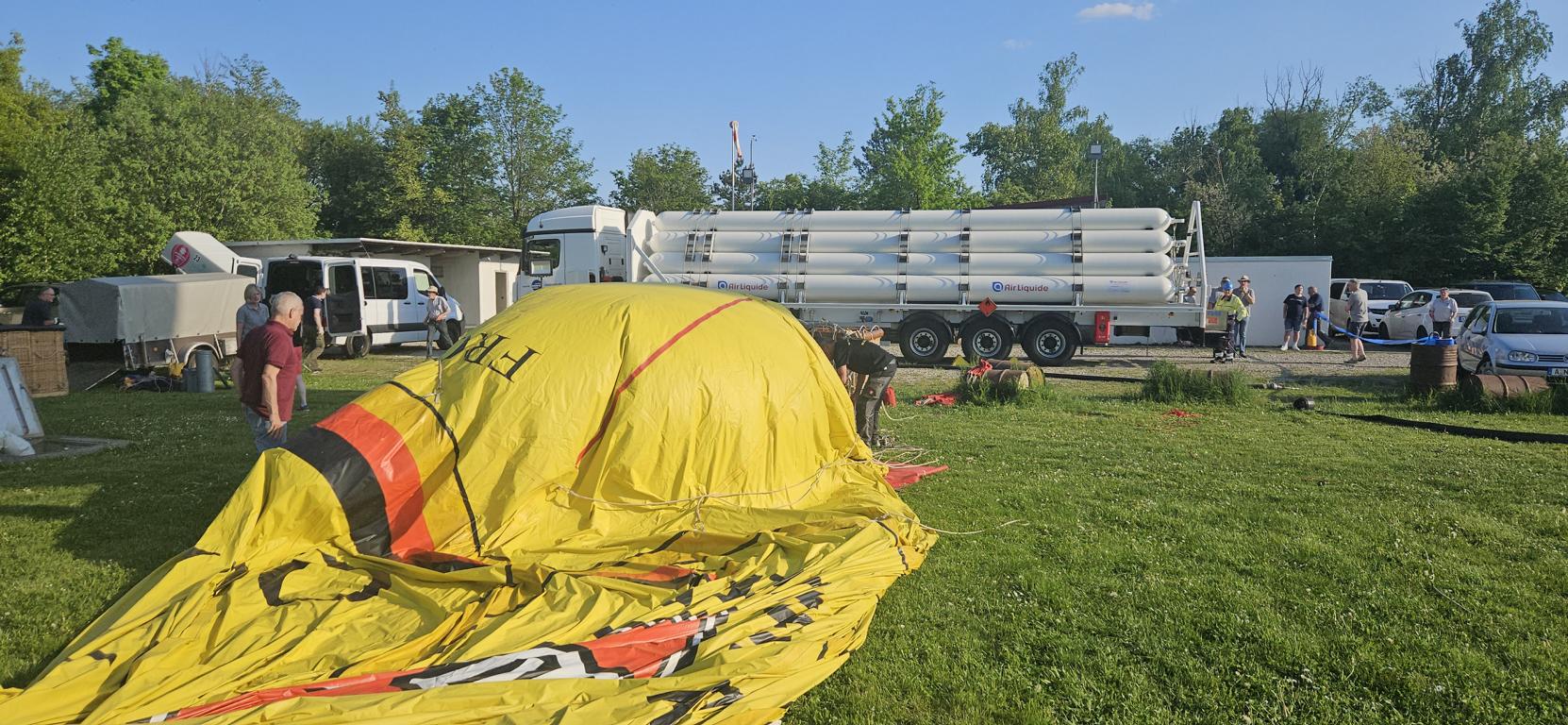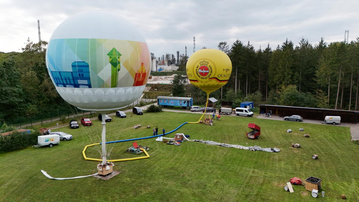 Bahnhof Kastl- Inn Staustufe Jettenbach - Gasballon fast gefüllt